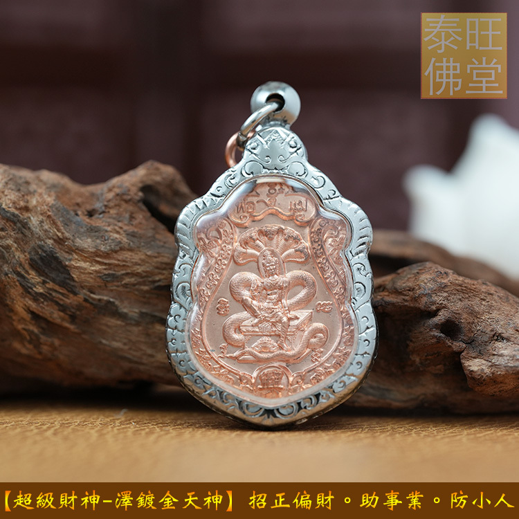 澤鍍金天神是天神界是泰國人公認最招財的天神!招財、招財、還是招財,在佛曆2549~2550 年風靡全泰國!(距今10年前),全泰國寺廟都開始督造澤鍍金天神佛牌,但是大部分人都認可的幾位師傅分別為『龍波龍耐』、『阿贊坤潘』、『阿贊初』這幾位師傅,前面兩位師父的佛牌已經相當難尋、而且價格相當的高價,此面佛牌為阿贊初師傅於2562年所督造加持的澤鍍金天神,法會剛不久,我們一到寺廟發現現場所剩無幾,只剩下幾種材質,一問寺廟櫃檯人員才知道,很多面聖物在預購的時後以及法會當天的時候全部結緣完畢!為何搶成這樣,原因有二,此面佛牌稱為『哈洛』,中文翻譯為五輪的意思,每一輪為12年,而今年為第五輪,也就是師傅的60歲生日紀念版,其二是師傅久久才製作一次聖物,每次聖物特別少,所以造成許多信眾以及牌商們瘋狂搶供,因為阿贊初師父的澤鍍金天神成願事蹟相當多,據說是現代唯一可以招喚澤鍍金天神下來共同加持佛牌,在請供時現場也有許多師姐跟師兄跟我推薦師傅的澤鍍金天神,不管是在『財運上』、『事業上』、『防小人是非』都有獲到極大的幫助,當然他們身上都配戴師傅的澤鍍金天神,甚至裝上純金殼來還願。最後請出廟時,師傅還在每一尊底部都親刻印上符印,讓每一尊澤鍍金天神佛牌都圓滿出廟,現在請供時是非常好的時機,之後隨著數量越來越少,聖物越來越難尋的時候,價格也會越來越高呢!自行『配戴』或者『收藏』都相當適合,