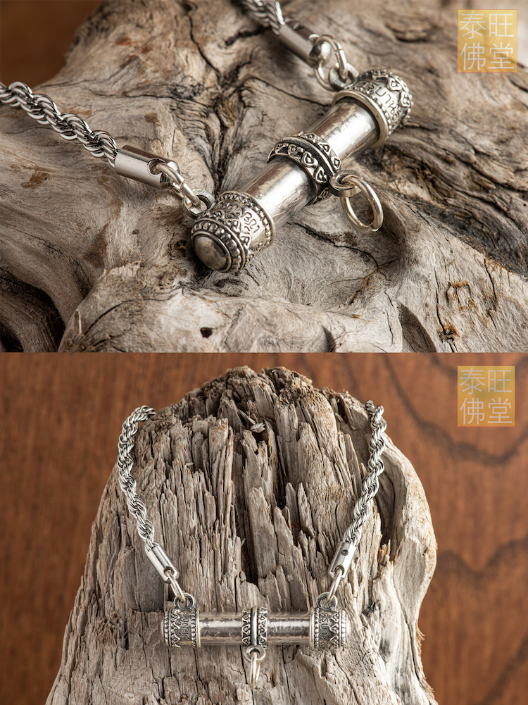 此外殼為泰銀,跟台灣銀不盡相同,根據每個人配戴狀況不同,外殼久了之後都會有氧化變暗的問題,是屬於正常的,也不會影響到聖物的力量,畢竟重要的是師傅的加持以及經文