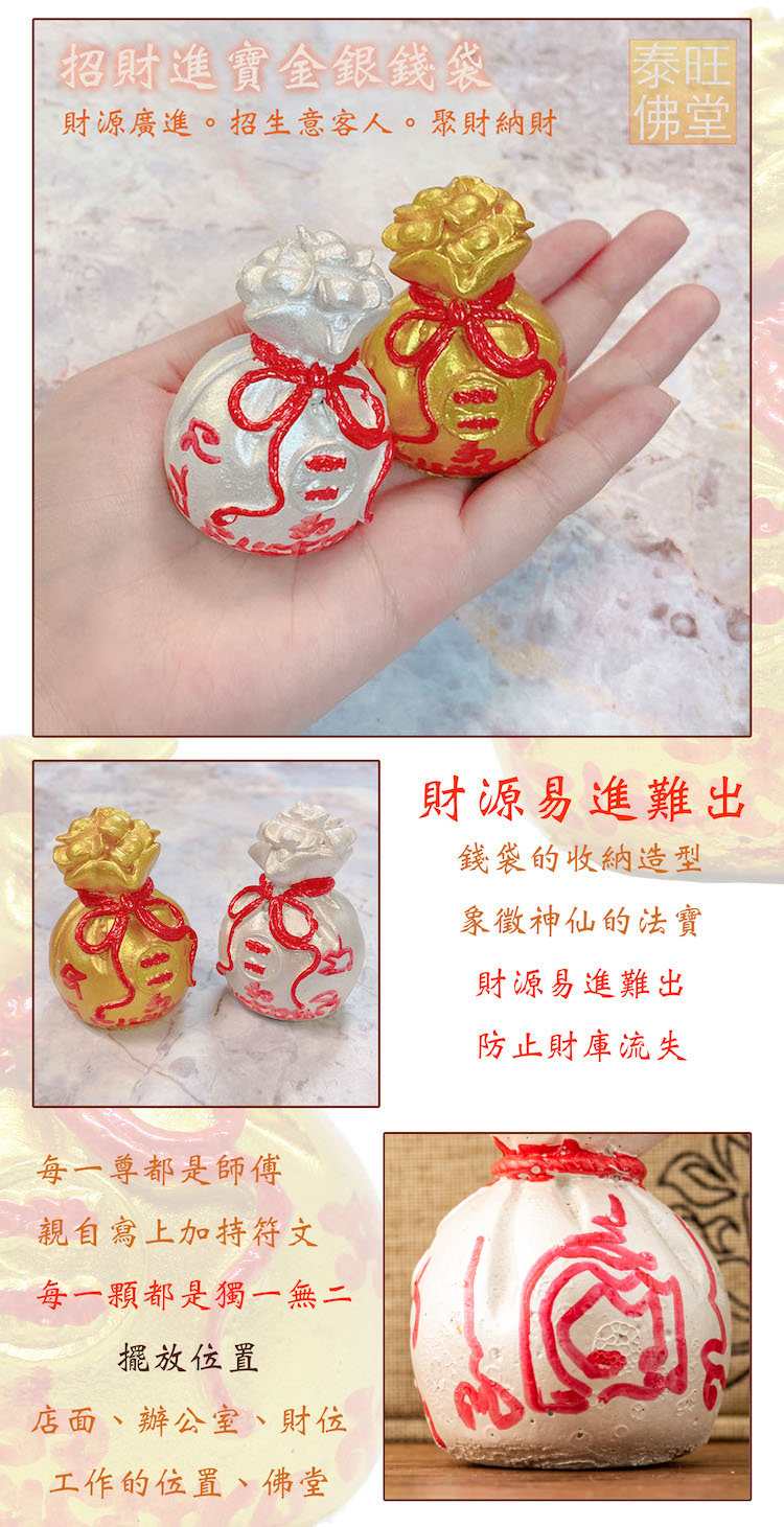 【下單後您會收到的聖物】招財進寶金銀錢袋一對+錢袋紙本經文說明