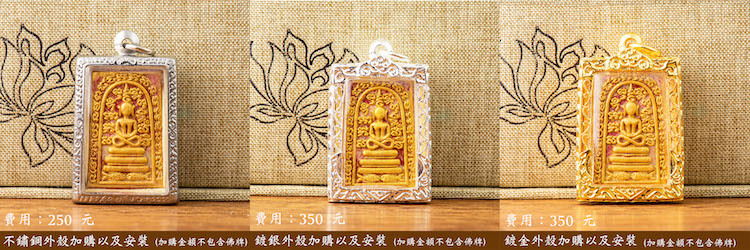 每一尊佛牌價格皆是裸牌的價格,可以於加入購物車的上方加購自己喜歡的外殼