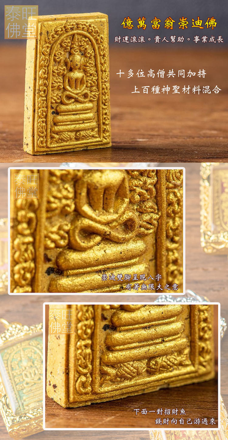 崇迪佛又稱為『佛牌之王』最原始法相由阿贊多師父所設計的法相,據說一天阿贊多大師正在禪定,聽到其師父的聲音說:『明天日出很特別,早起到海邊看日出吧』阿贊多大師天亮便跑到海邊去,當時天還未亮,但東邊發出一道白光,慢慢變作一尊全身發著白色光的佛像,呈現在東邊的海面上,阿贊多大師高興至流下眼淚,這尊像太陽般的佛像,一定帶來幸福平安〞然後叩拜離開。這樣阿贊多大師便開始製作崇笛佛。而製作崇笛佛的材料,有廟宇的泥土、香灰、高僧剃下的頭髮、五穀及高僧舍利子做成,再請各大名寺高僧,為佛像做大法會誦經,十分真貴。崇笛佛能保人平安、辟邪、擋危險、助人緣、事事順利。據說佩帶崇笛佛者,只要心存善心,必得事事順利,事事如意,受天神護法保佑。所以,至今大大小小廟宇高僧,亦有製做崇笛佛給善信供請。崇笛佛沒有面相。初時,法坐多為三層代表天地人三界、亦有五層、七層或九層,近六七十年更有十一層、十三層之多。 在這一百幾年,崇笛佛的神跡多至數之不盡,企業事業越來越順利、業績也常常超越他人、也曾經有人從高處失足跌下,但他佩帶了崇笛佛,身體沒有受傷。又例,有一個人佩帶了崇笛佛,駕駛汽車發生交通意外,汽車接近完全破爛,但人竟沒有受傷,諸如此類真的數之不盡。