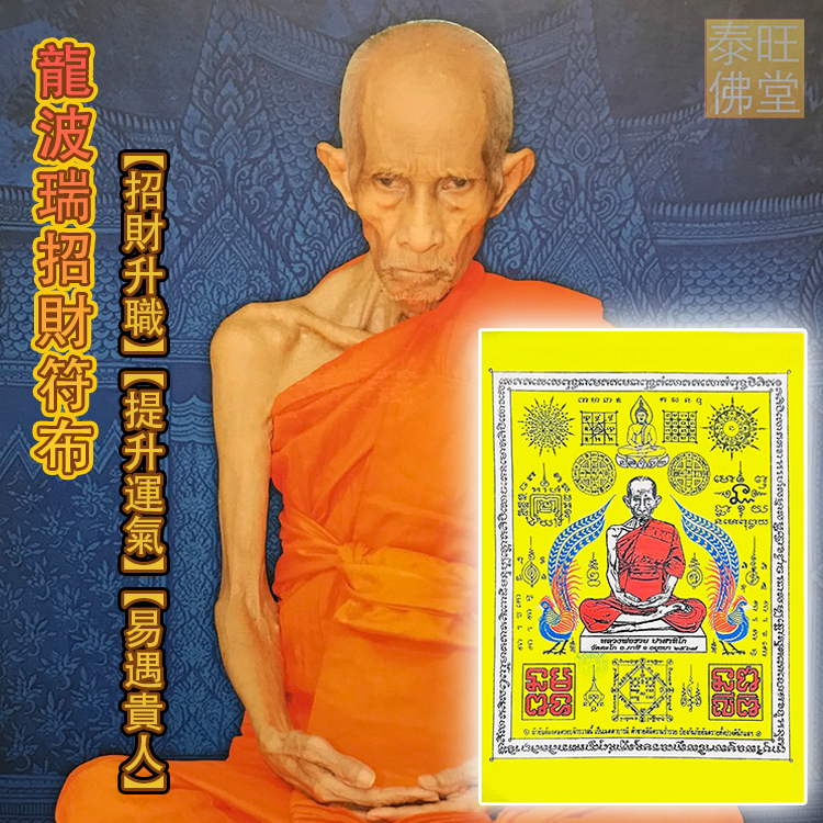 龍波瑞高僧生於佛歷2464年(公元1921年),在滿20歲成年時就正式受戒為僧,大師的泰文法號(譯音)瑞這個字在泰文裡意思是富有(有錢)的意思,而且大師在於招財法門的功力深厚,所以非常多的信眾都爭相請供龍波瑞高僧的佛寶,認為非常吉祥,其實大師除了招財法門相當靈驗之外,最廣受泰國信眾流傳的,還有擋災保命法門,大師對於加持入法非常嚴謹,功效及靈力極高,例如大師知名的佛寶作品,有一款銀手環,在當初剛完成開光時,就現場讓工作人員以手槍開槍測試,當時無論怎麼樣的用力扣板機,槍就是無法擊發,當下就讓信眾感到非常驚奇,紛紛爭相請供。