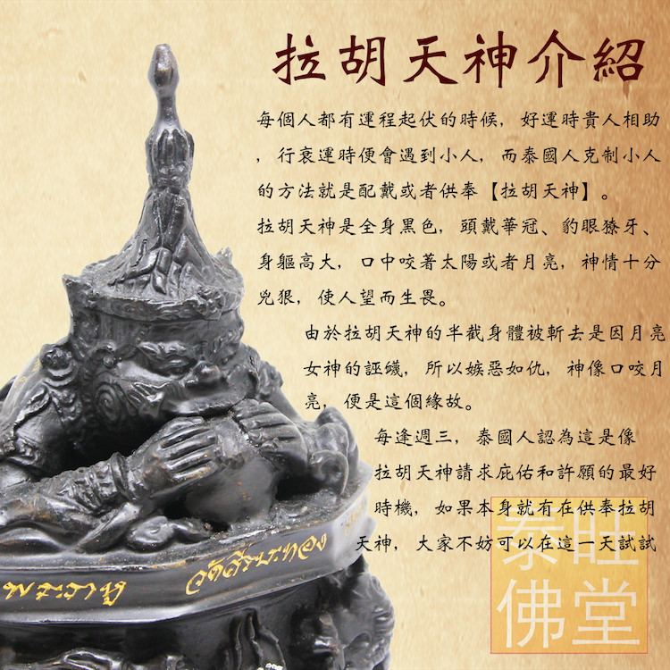 如果今年犯太歲,必須配戴這一尊,現在真的不是管你是做什麼事情,都不免了背後有人小來搗亂,牽一髮動全身的你感情、財運、事業、生意,都受會到各種影響,所以店長都會推薦朋友們配戴拉胡天神,拉胡天神為泰國吃小人第一!不管你有沒有發現,你永遠都不知道小人會在背後對你做什麼事情!有著拉胡天神還是比較安心!