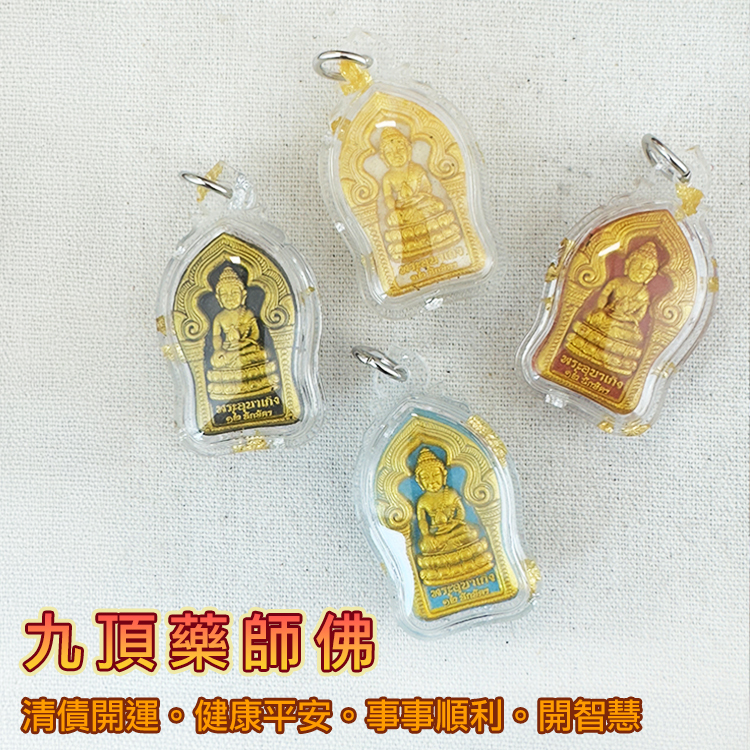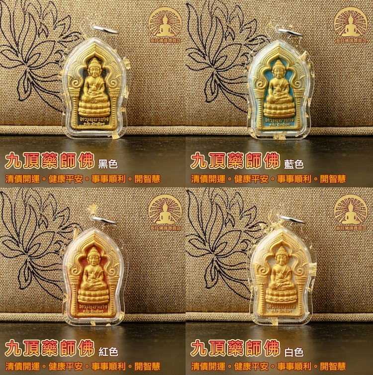 藥師佛是少數於大乘及小乘佛教裡共同尊崇之佛祖的另一種造型。儘管大乘佛教有諸多不同的說法,但都是有共同的地方就是保佑健康,遠離百病,最先引進及製作藥師佛就是曼谷非常著名的善見寺(Wat Sutus)。追溯到泰國第十二任僧王善見寺主持 ; 從文獻及師傅記錄,一百年前,於佛曆2450年(西元1907年), 當時年青的善見寺主持的師傅患了重病, 病情垂危, 得知在皇宮內存放了一尊從東方傳來的藥師佛,據聞此聖物擁有冶病的神力工效,龍波於是問准當時的泰王借出聖物,加入聖水頌經,其師喝下聖水後,不久即奇跡的康復了,主持對此聖物深表謝意,逐決意研究及製作藥師佛,而後各大小廟宇也仿效善見寺的藥師佛了。所以藥師佛得以推廣至平民百姓,藥師佛普及後,除了原先治病保平安外,在製作及開光過程還加入了其他多種經文和聖料,所以藥師佛在泰國是廣受從商及各行人士供奉及配戴的。