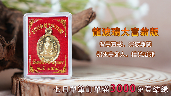 網站請供金額單筆滿3000元以上,即可免費結緣聖物【龍波瑞富貴佛牌】一尊(限量299面)市價988元以上,贈送完為止