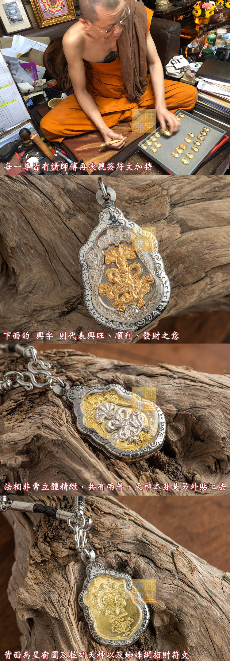 澤鍍金天神是天神界是泰國人公認最招財的天神!招財、招財、還是招財,在佛曆2549~2550 年風靡全泰國!(距今10年前),全泰國寺廟都開始督造澤鍍金天神佛牌,但是大部分人都認可的幾位師傅分別為『龍波龍耐』、『阿贊坤潘』、『阿贊初』這幾位師傅,前面兩位師父的佛牌已經相當難尋、而且價格相當的高價,此為阿贊初師傅為了幫助醫院採購器材特別於2563/2/1號一早開放結緣,部分的特別版本已經在2-3個小時內全部結緣完畢,因為師傅每次製作版本也數量相當稀少,所以造成許多信眾以及牌商們瘋狂搶供,因為阿贊初師父的澤鍍金天神成願事蹟相當多,據說是現代唯一可以招喚澤鍍金天神下來共同加持佛牌,在請供時現場也有許多師姐跟師兄跟我推薦師傅的澤鍍金天神,不管是在『財運上』、『事業上』、『防小人是非』都有獲到極大的幫助,當然他們身上都配戴師傅的澤鍍金天神,甚至裝上純金殼來還願。最後請出廟時,師傅還在每一尊底部都親刻印上符印,讓每一尊澤鍍金天神佛牌都圓滿出廟,現在請供時是非常好的時機,之後隨著數量越來越少,聖物越來越難尋的時候,價格也會越來越高呢!自行『配戴』或者『收藏』都相當適合,